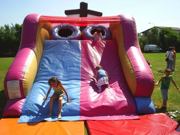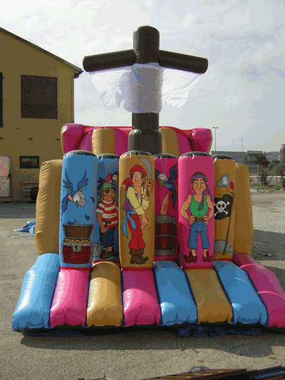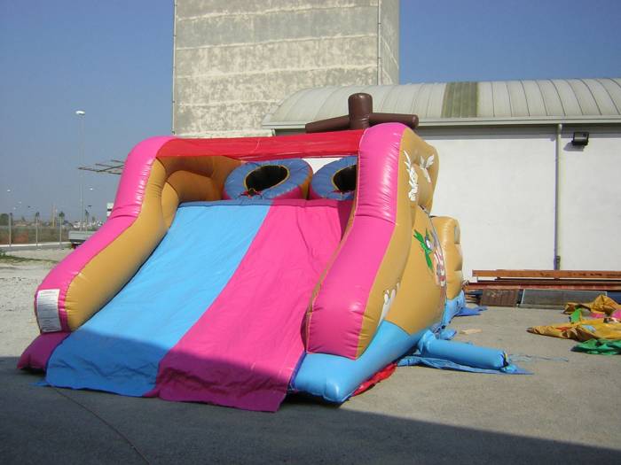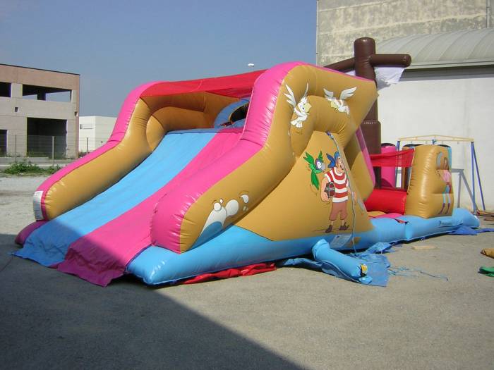 Noleggiare questo gonfiabile di grandi dimensioni vuol dire noleggiare una grande struttura, lunga 9 metri, alta 4,5 metri e larga 3,5 metri.