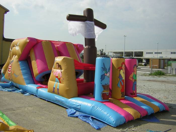 Il percorso gonfiabile con la struttura fatta ad immagine di un percorso di guerra.