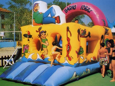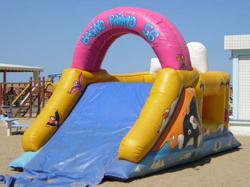 Un gioco gonfiabile che diventa percorso gonfiabile. Costruito per essere un salta salta in un primo momento, si struttura in una salita poi, ed una scivolata dopo 6 metri di percorso. Il gonfiabile è adatto ai compleanni per tutti i tipi di bambini. E' largo 3 metri ed alto 3 metri. Ideale per un parco giochi anche al chiuso.