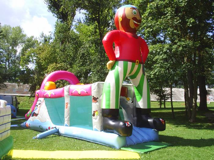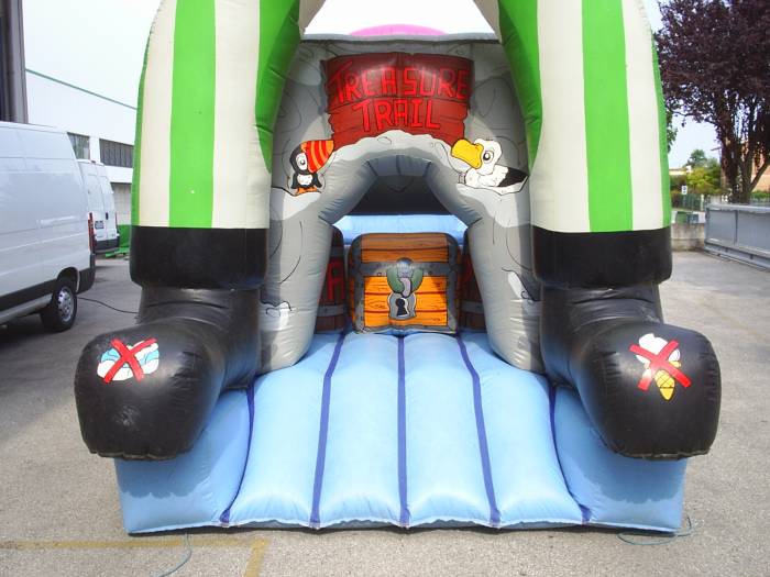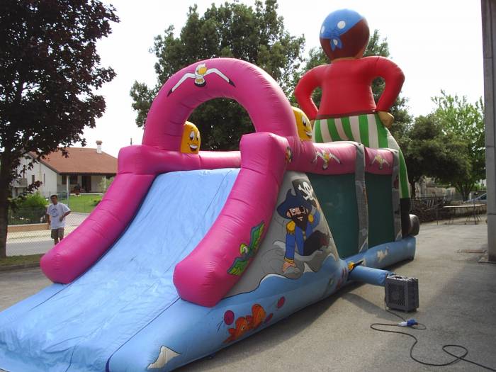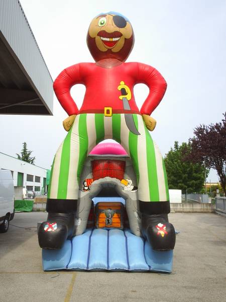 Il pirata gonfiabile alto 7,5 metri, un percorso lungo 7 metri e largo 3. un gioco gonfiabile adatto per essere noleggiato per compleanni, ma anche per feste importanti. Salta salta, scivolate e passaggi stretti fanno di questa struttura gonfiabile un gioco facile da trasportare, ma importante nella classifica dei gonfiabili.