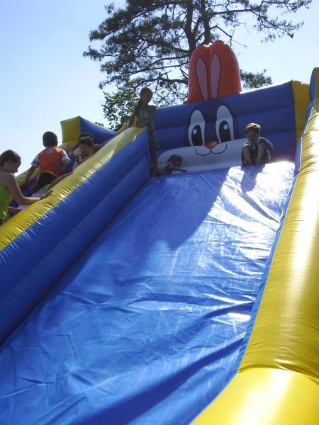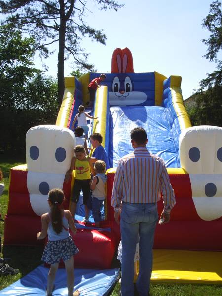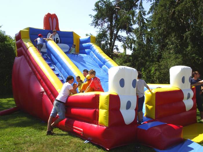 Lo scivolo gonfiabile adatto alle feste importanti. Una scivolata medio grande ne fa della struttura gonfiabile un gioco importante. Il coniglio gonfiato ad aria, rende lo scivolo divertente per ogni tipo di noleggio.