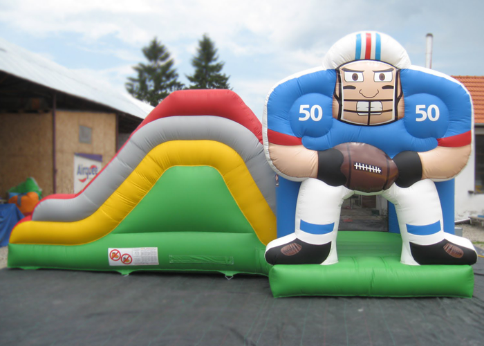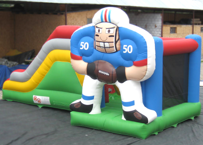 Un fantastico rugbista gigante gonfiabile situato all'entrata che decora il gioco, creando un impatto scenico bellissimo.