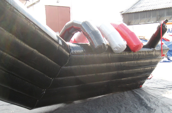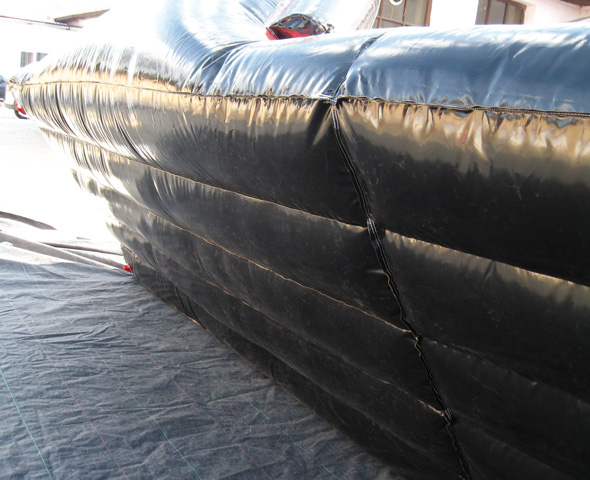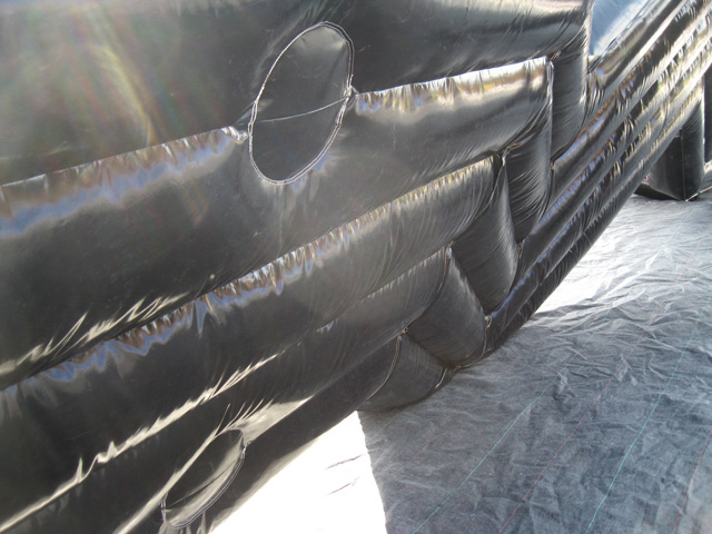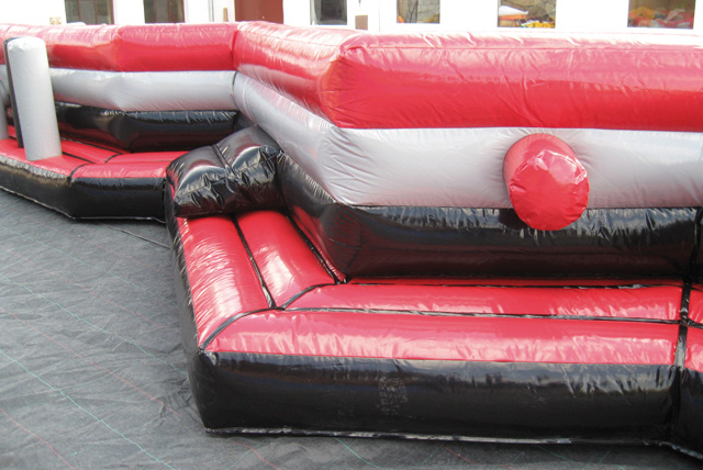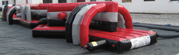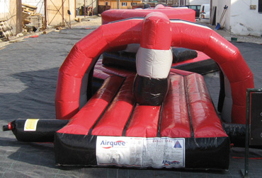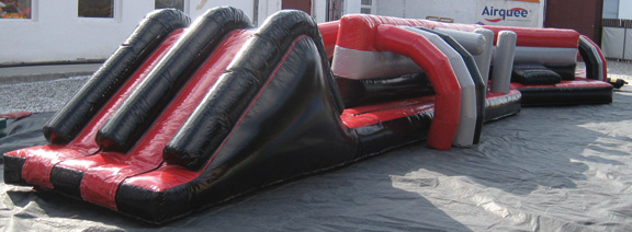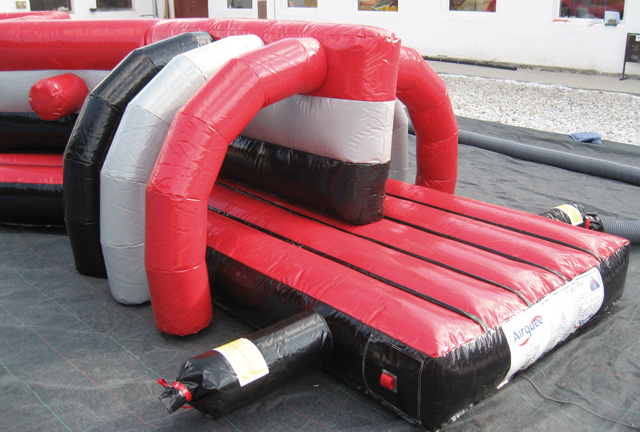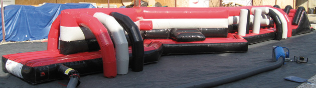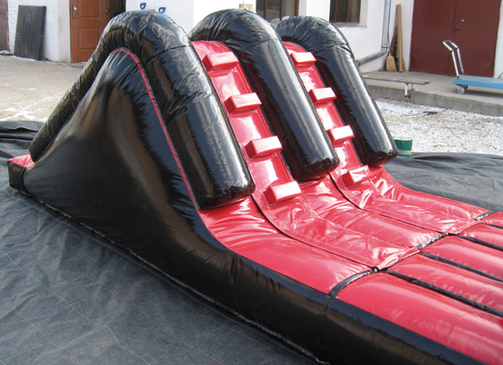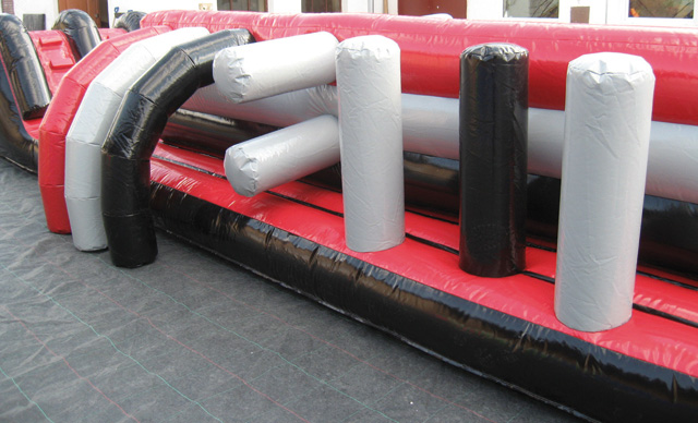 Piattaforma a zig zag divisa da una muro (tutto gonfiabile!) che divide le due corsie per ogni concorrente. Ogni corsia ha degli ostacoli da superare, attenzione a non cadere però, se non vuoi perdere!