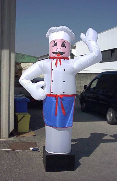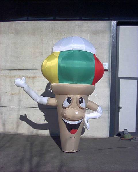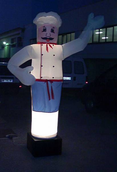 Alto 3 metri, a forma di cuoco gonfiabile o cono gelato, oppure con la fisionomia di un babbo natale sempre gonfiato ad aria fredda, i gonfiabili dinamici sono economici ma di grande resa pubblicitaria.